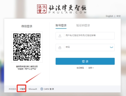 VPN登录成功后,访问//www.pkulaw.com链接,用户以学院用户的身份,使用北大法宝法律法规和司法案例资源。