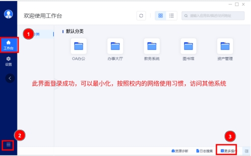 第五步成功认证后,客户端显示认证成功;此时用户已连入内网。可以参照校园网内的使用习惯访问校内所有资源。