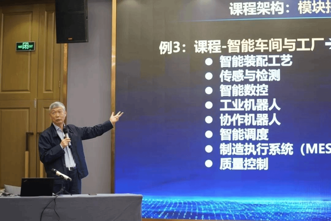 在研修班上李培根院士根据智能制造核心知识及智能制造人才培养的基本考虑,提出了智能制造方向5门核心课程及若干门专业方向课程的整体设计。华中科技大学高亮、华中科技大学尹周平、清华大学张智海等专家针对智能制造技术方向做专题讲座并与学员们探讨交流。