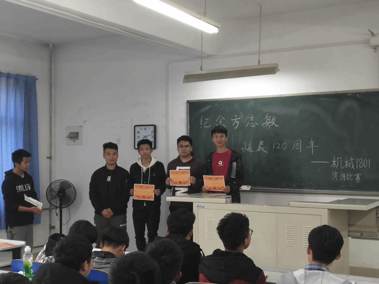 2019年4月12日下午3点30分,为追忆革命历史丰碑,传承高尚革命精神,机械1801团支部全体学生在8教207举办了“纪念方志敏烈士诞辰120周年”为主题的演讲比赛。