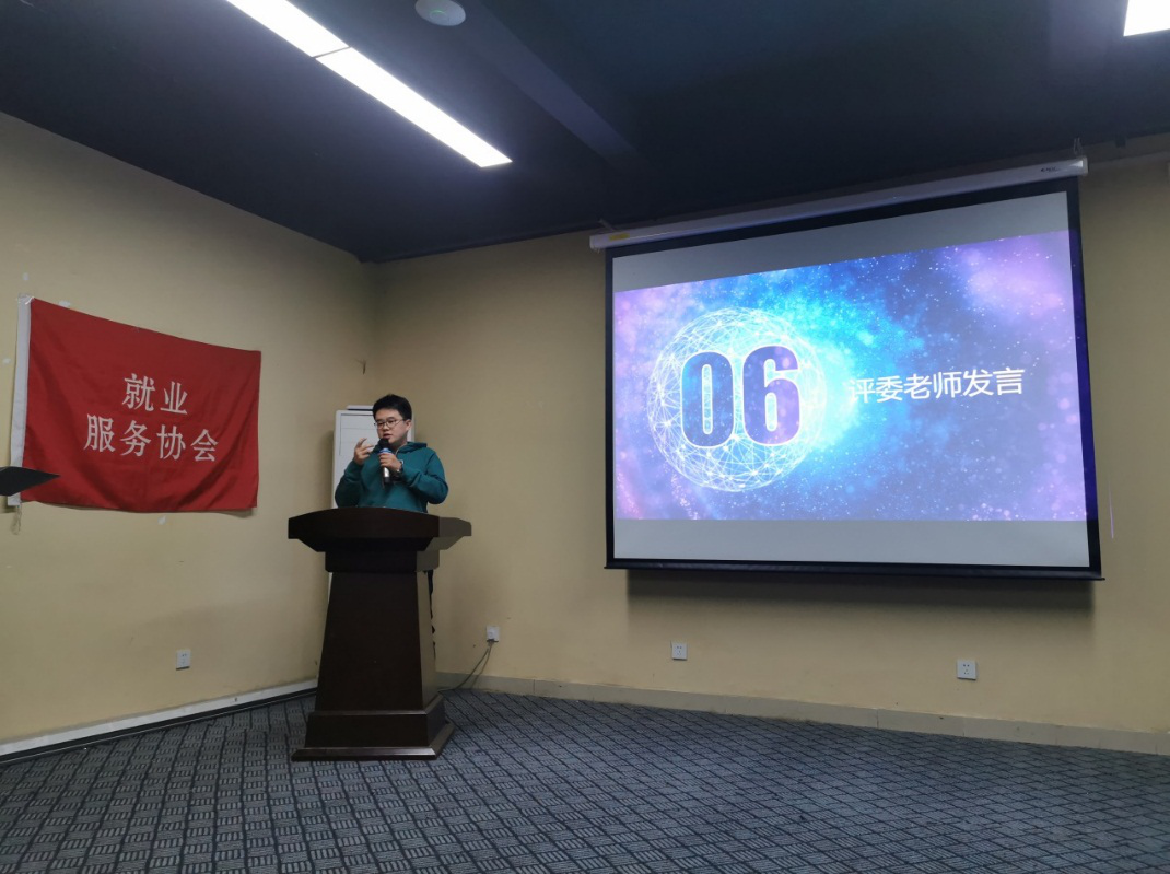 参赛选手演讲完毕后,就业指导中心的李春光老师对大赛进行点评。他总结了本次参赛选手的参赛表现,对同学们取得的成绩表示肯定,结合选手们的讲解内容、结构以及PPT的制作和演讲技巧问题等提出具体要求,同时嘱咐现场参赛学生及观众进入大学就要做好自己的规划,这不仅是大学的规划,更是人生的规划,让规划指引自己前进。